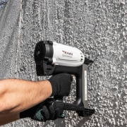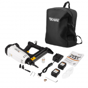 Гвоздезабивной газовый пистолет предназначен для быстрого монтажа крепежных изделий к бетонным поверхностям, кирпичной кладе и изделиям из металлопроката. Инструмент обладает силой удара в 95 Дж, что позволяет забивать гвозди длиной от 15 до 40 мм и диаметром от 2,7 до 3,05 мм. Емкость магазина – 30 гвоздей. Одного газового баллона хватает на 1100 гвоздей. Длина баллона без учета пластикового клапана 165 мм. При производстве применяются современные технологии закалки. Твердость сопел равна 52 HRC, что уменьшает износ и способствует стабильной, надежной и продолжительной работе инструмента. Твердость бойка – 57 HRC. Для увеличения ресурса инструмента в электродвигателе используют высококачественные японские компоненты. Цилиндры (камера сгорания) произведены из литого алюминия. Обработка поверхности цилиндров осуществляется на станках с ЧПУ, что способствует более высокой точности обработки всех деталей и сокращению брака. В комплекте поставляются 3 быстросъемные насадки для работы с различным крепежом.