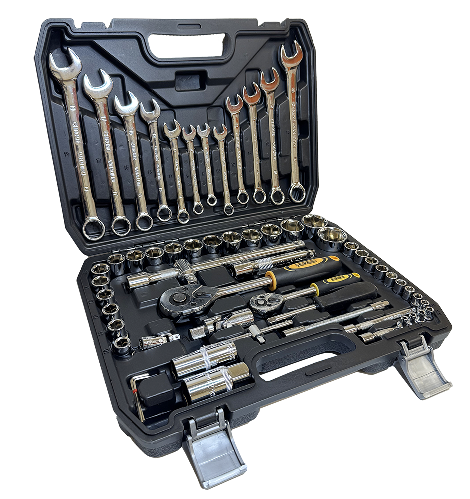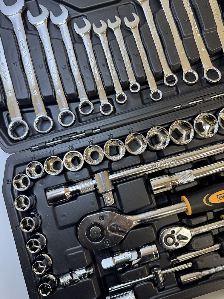 Наборы инструментов универсальные представлены в оптимальной комплектации и включают в себя самые необходимые инструменты и популярные типоразмеры головок и ключей. Универсальны и незаменимы для выполнения профессиональных и бытовых ремонтных работ. Рабочие части инструментов изготовлены из прочной стали и отличаются высокой стойкостью к износу.