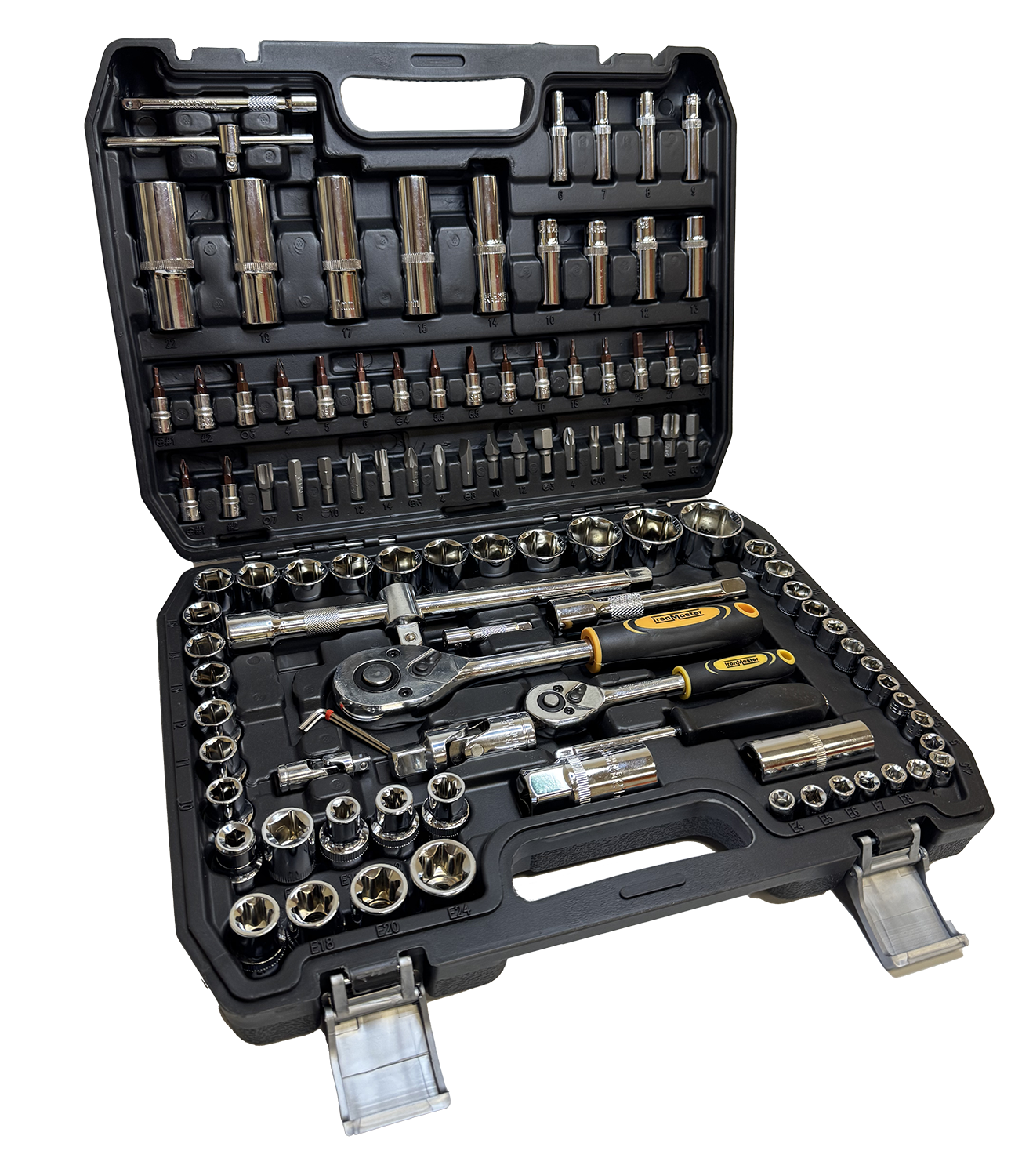 Наборы инструментов универсальные представлены в оптимальной комплектации и включают в себя самые необходимые инструменты и популярные типоразмеры головок и ключей. Универсальны и незаменимы для выполнения профессиональных и бытовых ремонтных работ. Рабочие части инструментов изготовлены из прочной стали и отличаются высокой стойкостью к износу.