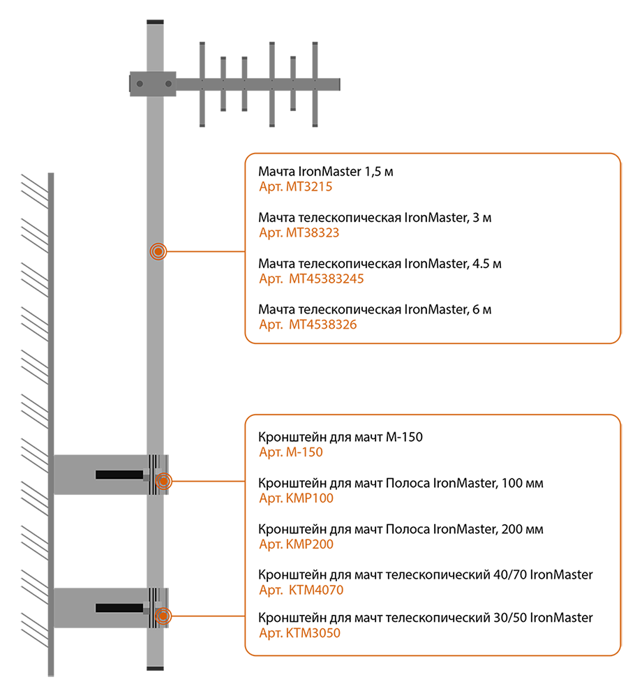 В зависимости от способа монтажа, для крепления мачты отдельно поставляются: