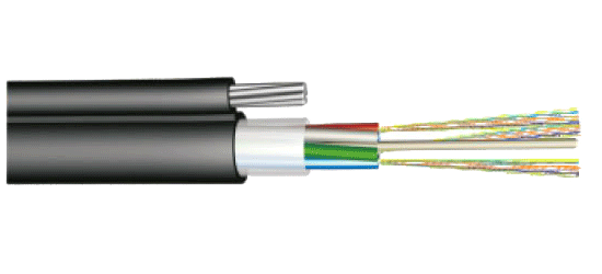 Кабель содержит сердечник модульной конструкции с центральным элементом из стеклопластикового прутка или стального каната, вокруг которого скручены оптические модули методом правильной SZ-скрутки. Внутри оптических модулей свободно уложены оптические волокна. Свободное пространство внутри оптических модулей и межмодульное пространство заполнено гидрофобным заполнителем. Сердечник скреплен нитями. На сердечник наложена ПЭТ-лента, закрепленная нитью. Одновременно поверх сердечника и несущего элемента накладываются оболочки. Оболочки сердечника и несущего элемента, стального каната, соединены вдоль общей образующей и выполнены из полиэтилена высокой плотности.