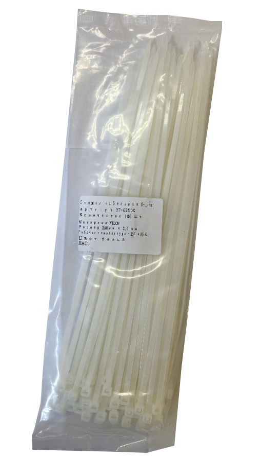 Хомут 250 мм x 3.6 мм X-Line, белый, 100 шт