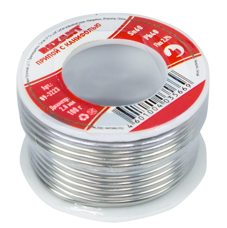 Представляет собой проволоку (диаметром 2 мм) из сплава олова (60%) и свинца (40%). Используется в пайке для соединения деталей между собой и позволяет создать герметичный, механически прочный (устойчивый) шов.Статус: В наличии