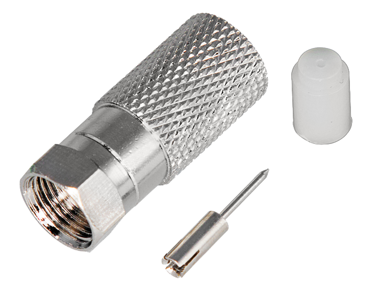 F-разъем предназначен для соединения коаксиального кабеля волновым сопротивлением 75 Ом с телевизионным и видеооборудованием (ресиверы, телевизоры, всевозможная видеоаппаратура и т.д.). Монтаж производится методом накрутки разъема на внешнюю оболочку кабеля. Изделие оснащено специальной вставкой, через которую осуществляется переход с жилы кабеля RG-11 на стандартный размер штекера.