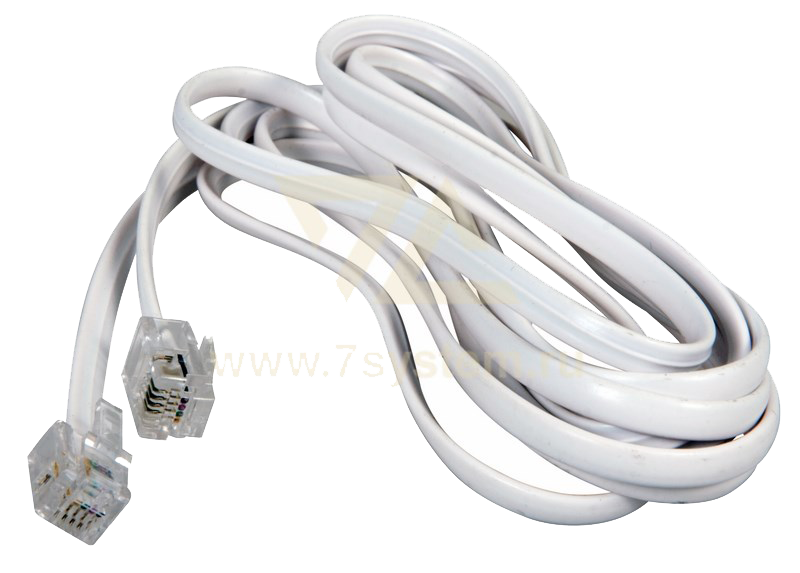 Представляет собой плоский четырехпроводный кабель, оконцованный разъемами 6P4C. Предназначен для подключения телефонных аппаратов. Цвет белый, длина 2 метра.